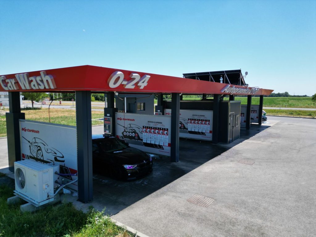 Objekt uključuje četiri natkrivena i jedan nenatkriveni boks za pranje vozila kroz pet programa i upotrebu aktivne pjene.